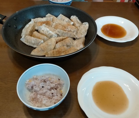 朝体重:46.0kgブランチ:十六穀ご飯、チルド餃子旦那さん作。私が歯医者(定期クリーニング)から帰ってきたら、もう焼きあがっていた。1人分257円ほ···