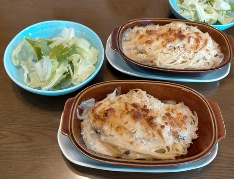 朝体重:45.2kgブランチ:焼きシーフードスパゲッティ、レタス・セロリの葉業務スーパーの「シーフードドリアの素使用」。玉ねぎ・ブナシメジ・冷凍エ···