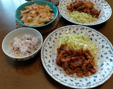 朝体重:45.5kgブランチ:十六穀ご飯、ポークチャップ+キャベツ、チキンペンネグラタングラタンはこれでラスト。1人分218円ほど。食後に冷凍ミックス···