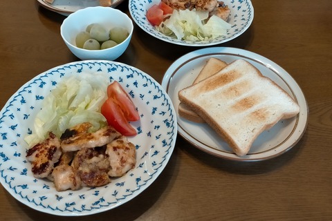 朝体重:44.8kgブランチ:トースト、焼肉チキン+レタス・トマト、冷凍したシャインマスカットシャインマスカットがいただきもの(これで最終)で、1···
