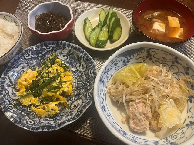 今日は昼から雨!最高気温も17度と肌寒い。ではいつものように昨日の夕食から。11月4日の夕食・肉団子とキャベツの煮物・ニラ卵・モズク・ぬか漬け···