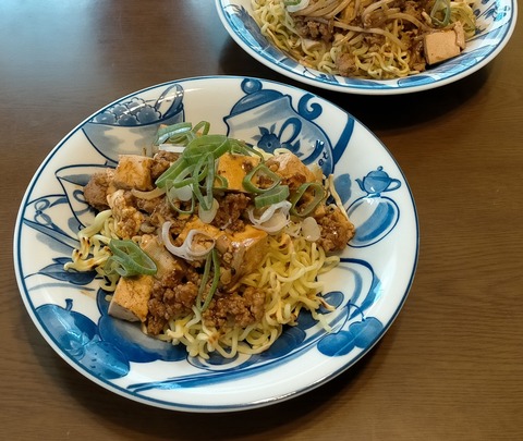 朝体重:45.9kgブランチ:麻婆焼きそばいつもの作り方で、麻婆豆腐の素はいただき物クックドゥバージョン。餡が少なく見えるけれど、味は濃い。麻婆豆···