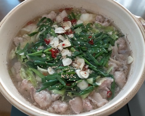 朝体重:45.6kgブランチ:もつ鍋株主優待カタログギフトでゲットしていたもつ鍋を、満を持して。牛もつ300gでは2人分には足りなさそうだったので、ス···